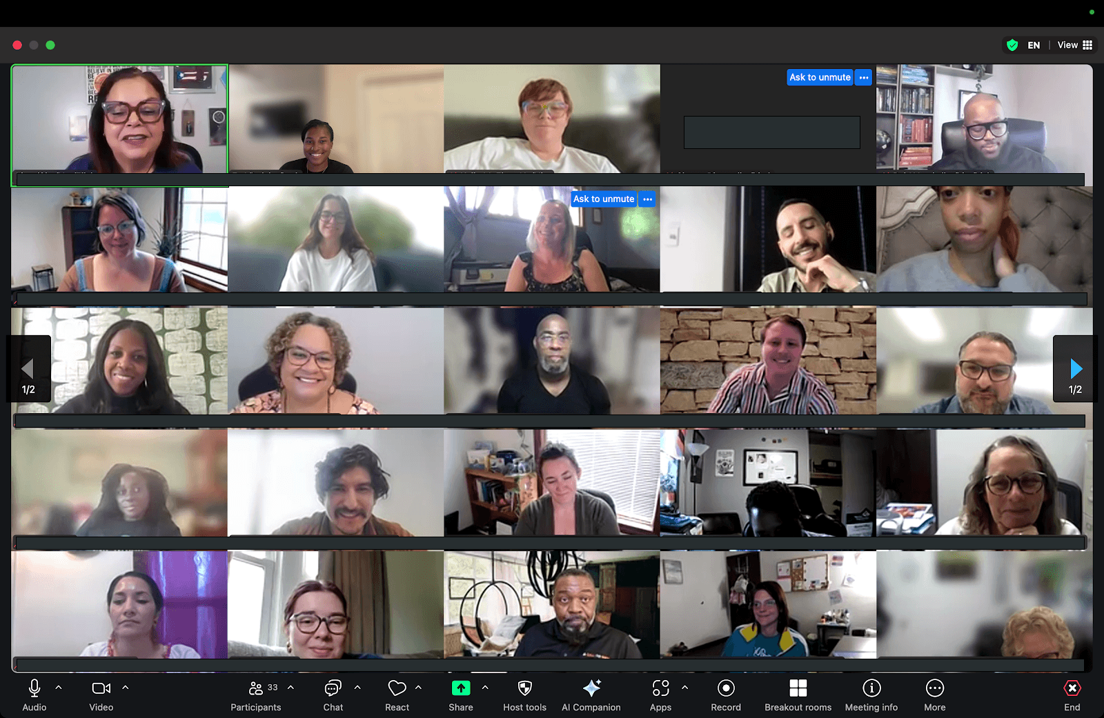 Participants engaged in a virtual training that examined how systemic structures shape and restrict the agency of Black and Brown people across work, community, and social environments. The training also expanded this lens to include gender and LGBTQ+ identities, highlighting the ways interconnected systems influence opportunity and access.