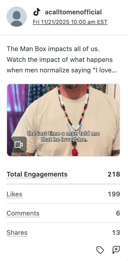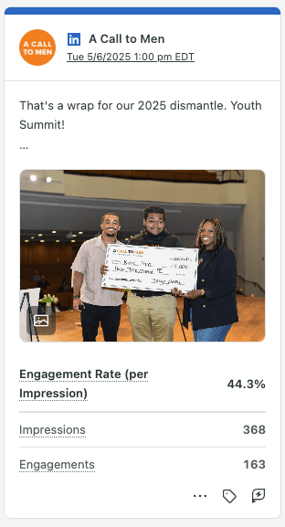 Across platforms, we strengthened our voice and expanded our reach in ways that sparked conversation, deepened connection, uplifted youth and families, supported fundraising, and shaped the national dialogue on healthier masculinity.